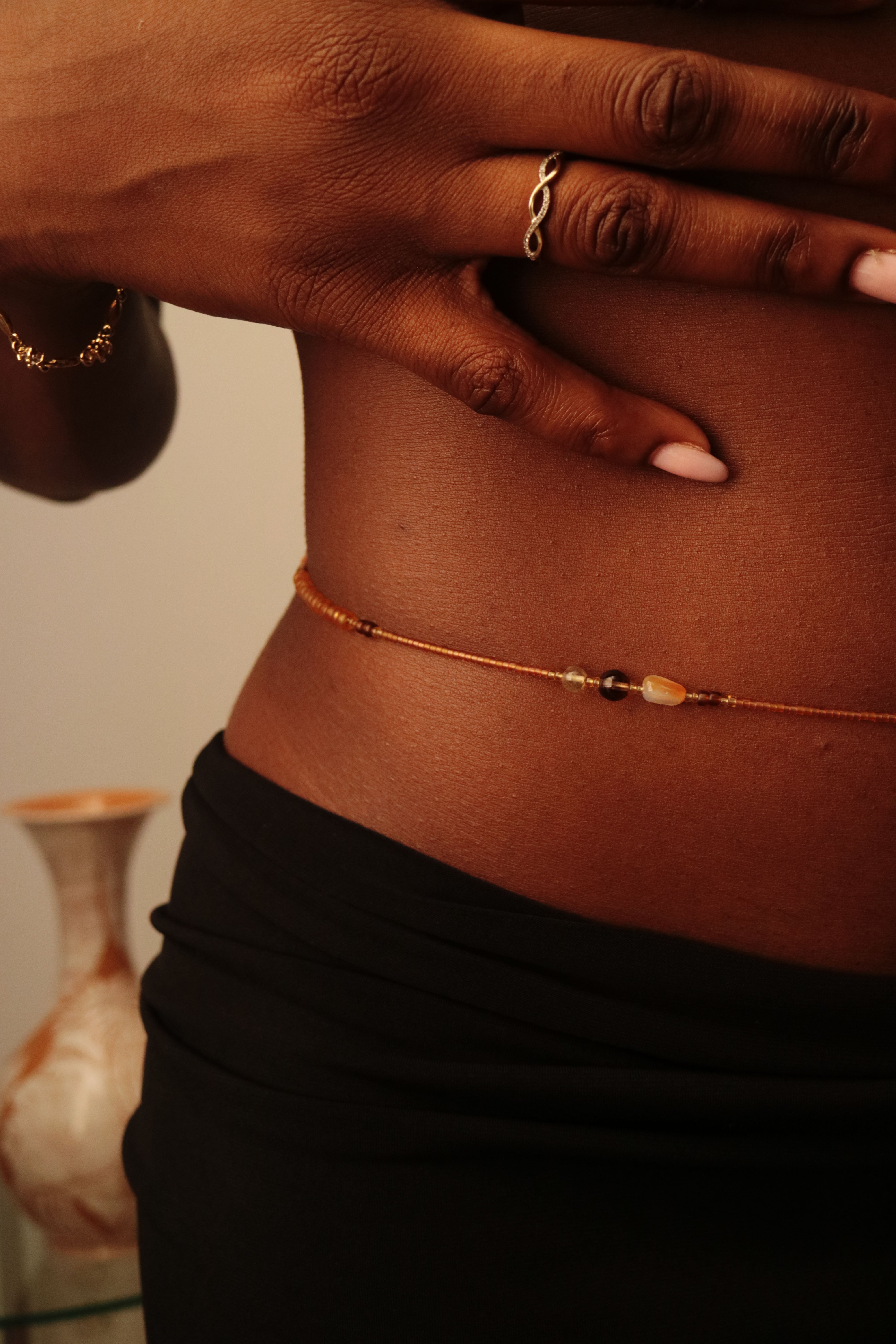 Each waist jewel is handcrafted to order. Please allow 2–3 weeks for creation before shipment. For waistbeads and ready-made pieces, processing is 5–7 business days. You’ll receive tracking info once your order ships.